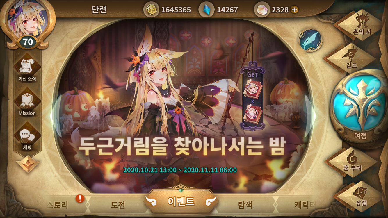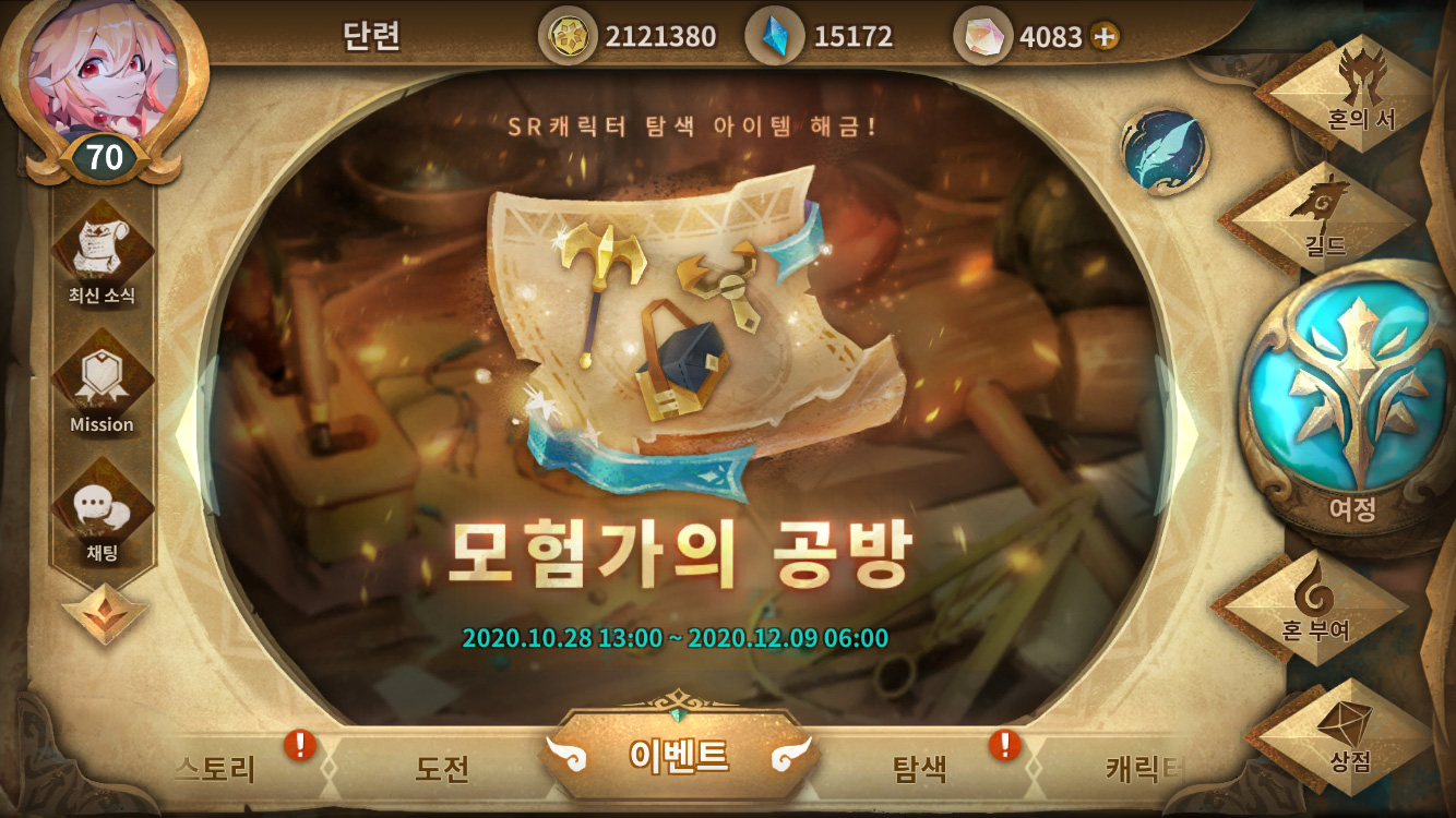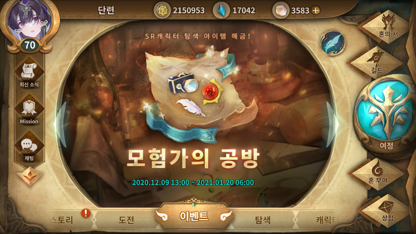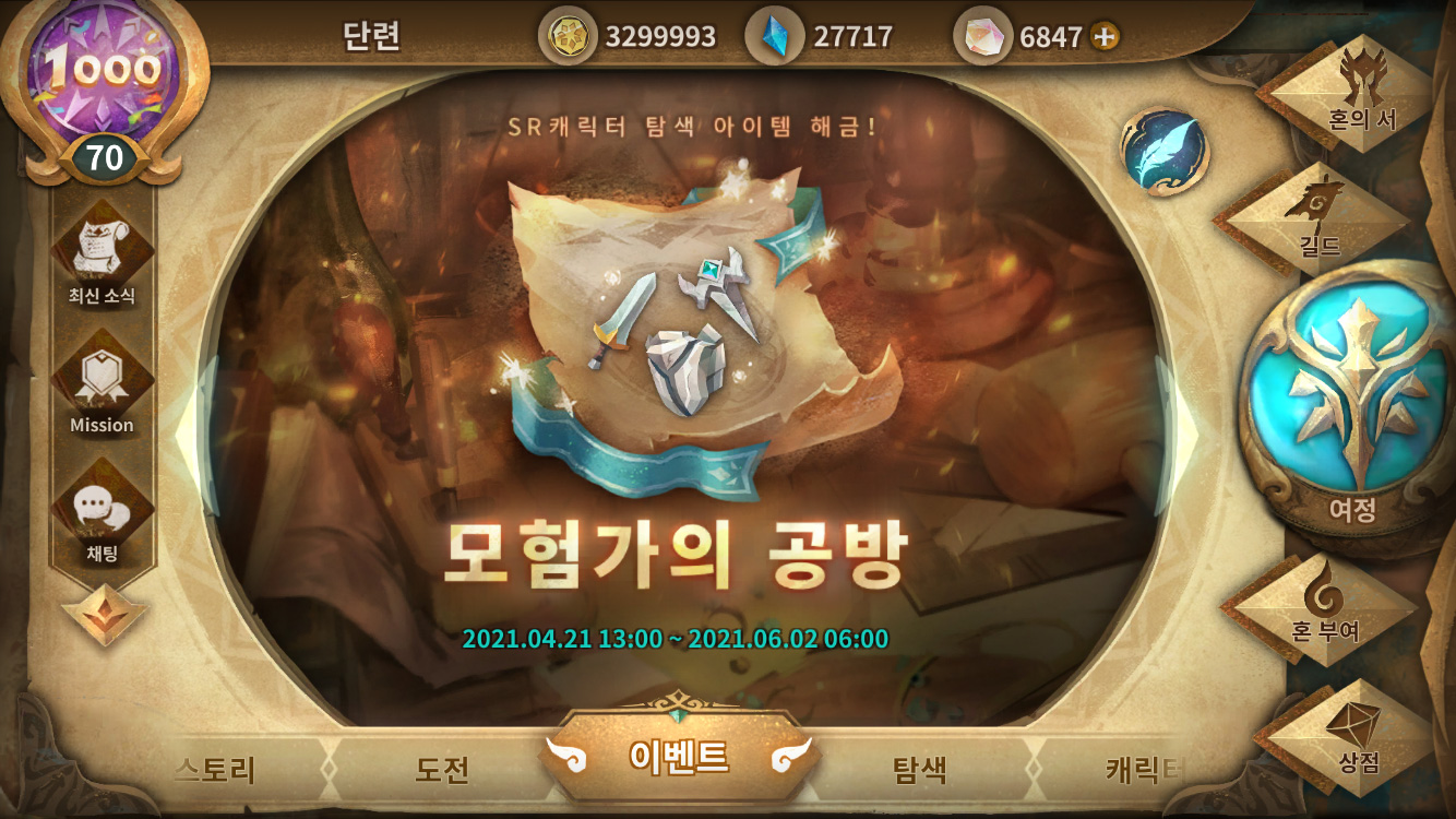 [Hard] 환상세계의 시련 → [Hard] 피난처 → [Hard] 눈에는 눈 → [Special] 몰락 귀족 (자한의 R 장비 브론즈 바람총, 크리스탈 원석 25개 획득 → 그렇다 → 강화가 붙은 혼을 사용하면 즉사당한다. 참모 [시온MZ]를 데려가면 좋았을 듯. 없더라도 장기전으로 가면 이길 수 있다. 자한의 SR 장비 화려한 바람총 합성 공식 해금, 크리스탈 원석 50개 획득)