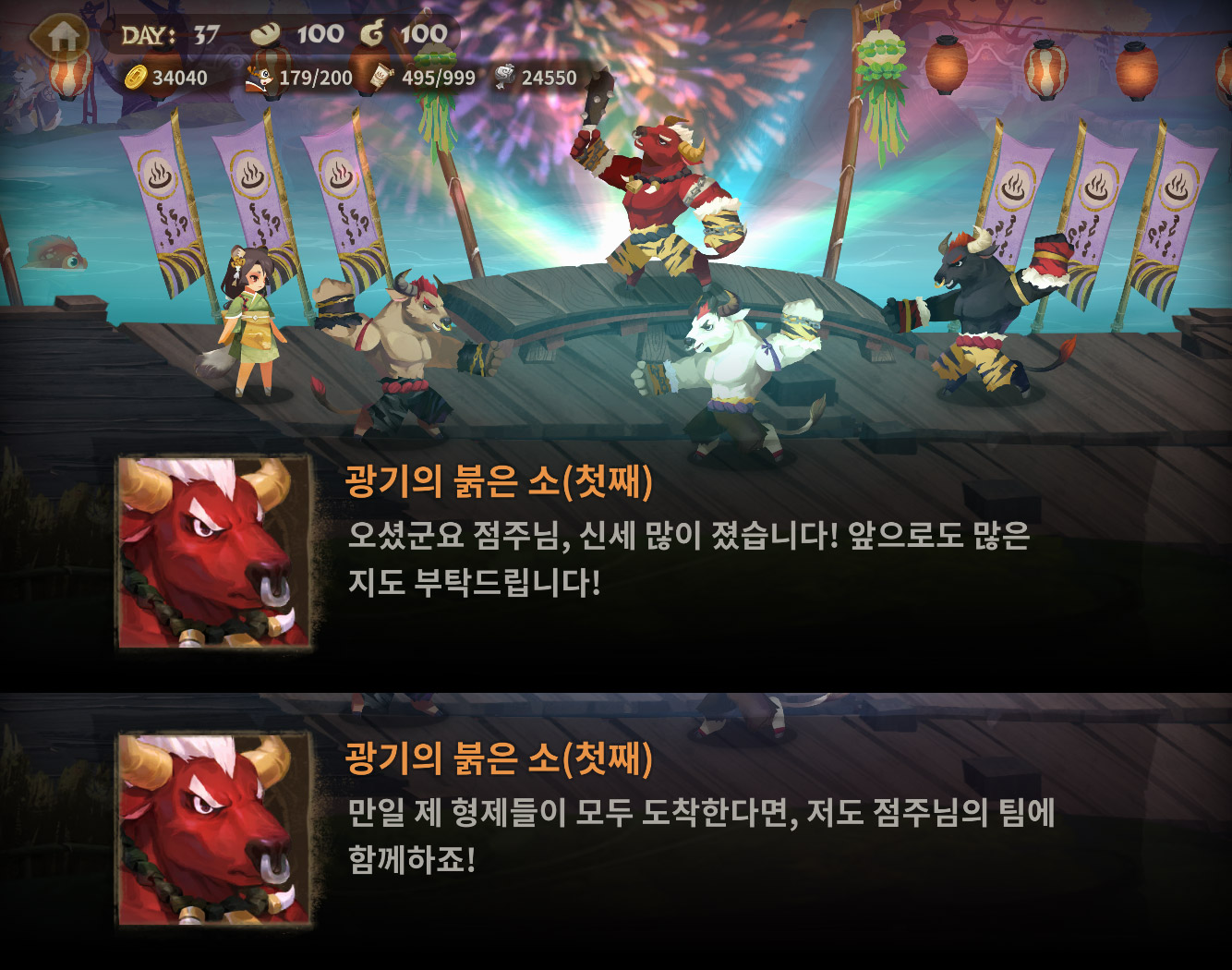 온천을 레벨 5로 만들고 가을 이벤트를 마치면 전투력 매우 강한 미친 황소 장남이 들어오게 된다.