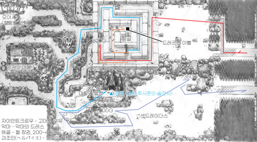 악마의 펜던트(1200G) : 서부 사막지대 악마의 동굴에서 이벤트 발생.