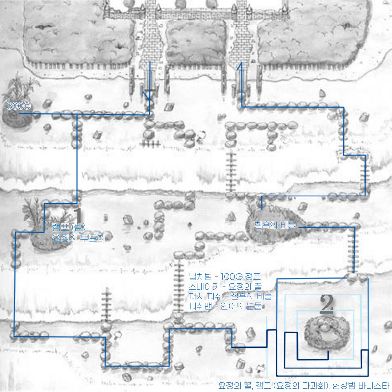 보물상자 - 동방외날검(東方片刃剣, 공격+20, 전투기술+10), 400G, 얼음 조각 획득. (어릴 때 지능이나 감수성부터 200 이상으로 올린 뒤 재빨리 보물상자만 얻고 오는 플레이도 가능.)