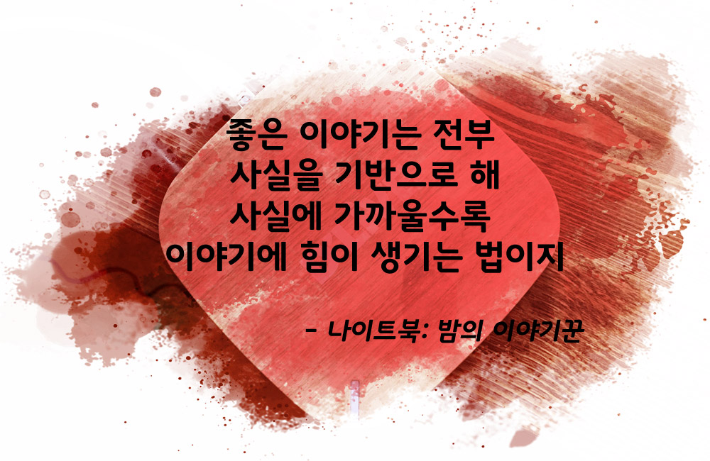 “좋은 이야기에는 다 진실이 들어 있어. 이야기가 사실적일수록 더 설득력 있는 거야” (자막)