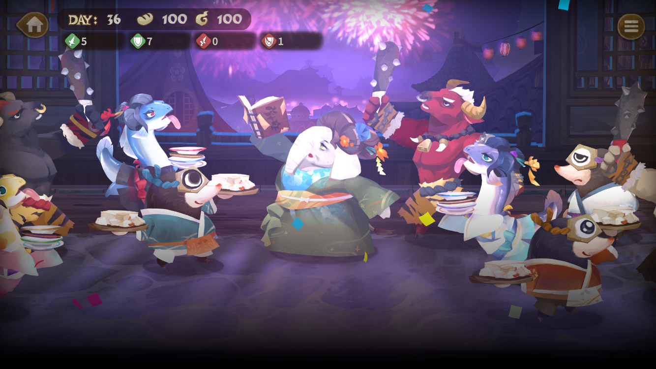 오소리 악당이나 술에 취한 변태 늑대가 나타나면 밤의 축제 기념품 75개, 4000 쿨렌(창고 쿨렌이 아니라, 이벤트 속 자금)을 획득할 수 있다. (→ 밤의 축제 기념품 90개, 6000 쿨렌 → 밤의 축제 기념품 105개, 8000 쿨렌)