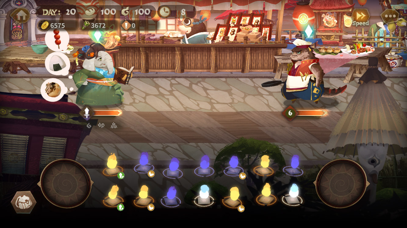 4혼으로 값비싼 주먹밥(금색혼) · 타코야키(흑색혼) · 탕후루(백색혼)를 만든다. (← 노점 현재등급 : 3부터.)
