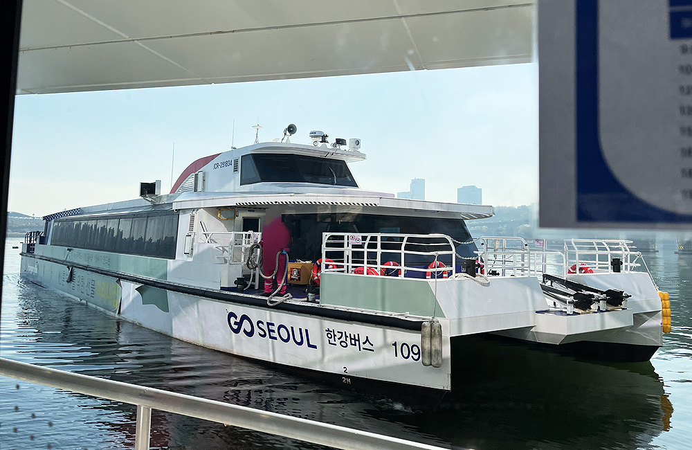 ① 한강버스를 타려면 우선 운항 시간표를 확인해야 합니다. 하루에 여덟 번밖에 운행하지 않거든요. (한강버스 홈페이지🔗)